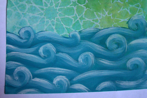 I repeated step 5 with the pale blue mix and went over the waves again.
